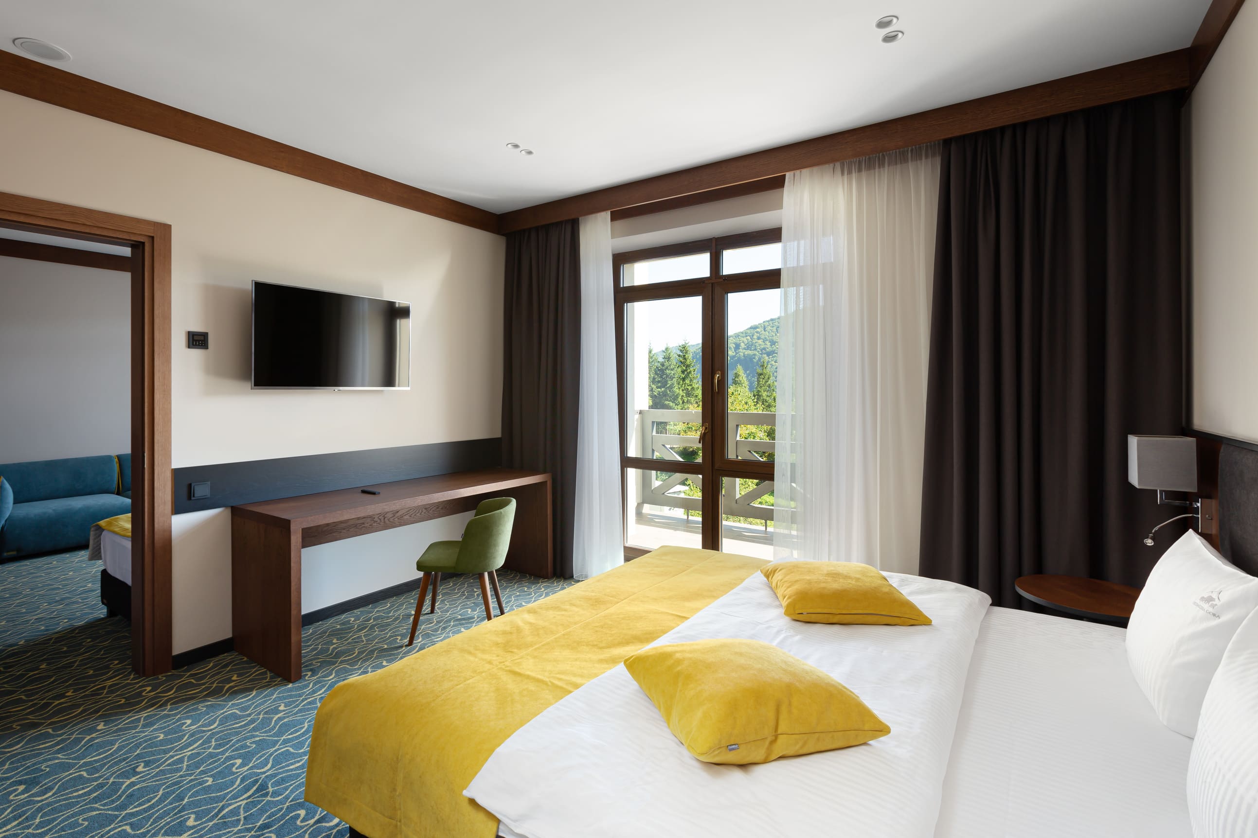 Простір наповнений атмосферою затишку. Відпочивайте великою родиною та насолоджуйтесь митями проведеними разом. Тераса в номері відкриє панораму на Яремче та могутні гори